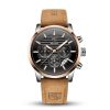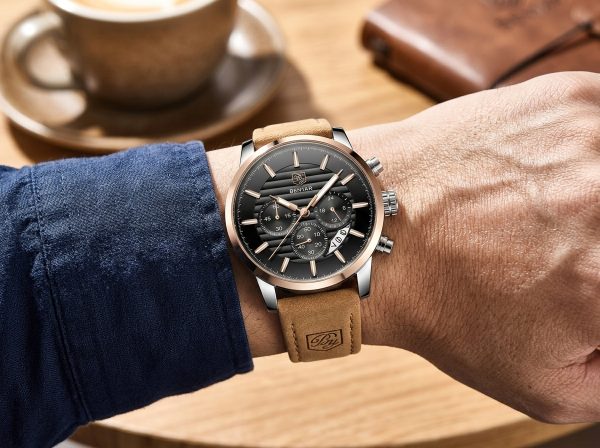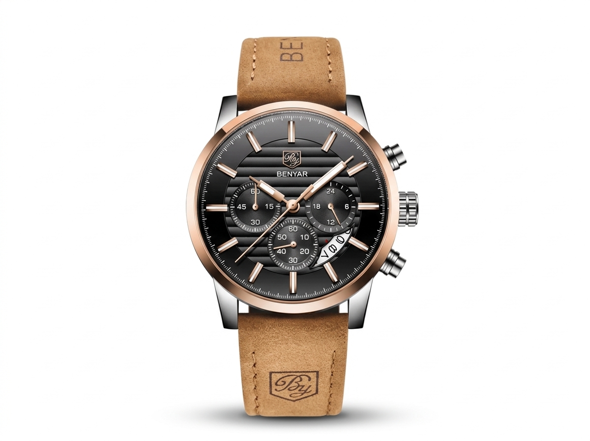 Ce garde-temps élégant allie fonctionnalité sportive et sophistication décontractée avec son cadran noir et ses accents or rose. Parfait pour rehausser votre style quotidien avec une touche de luxe discret.