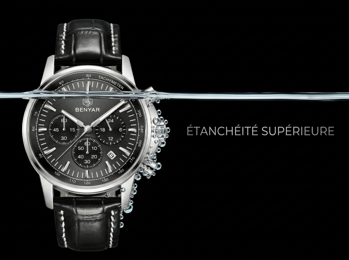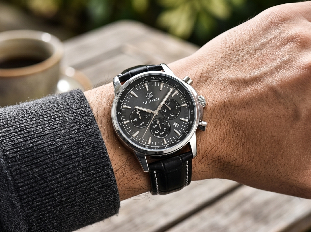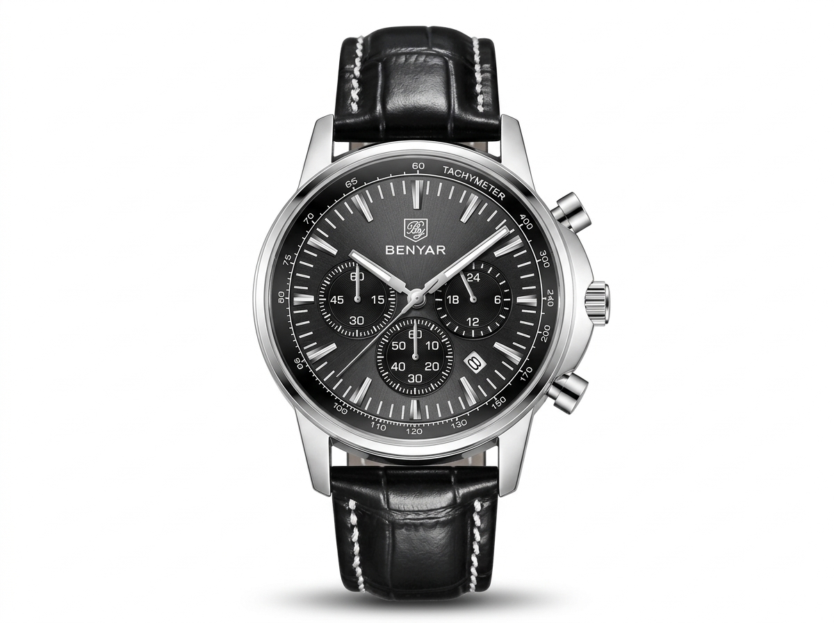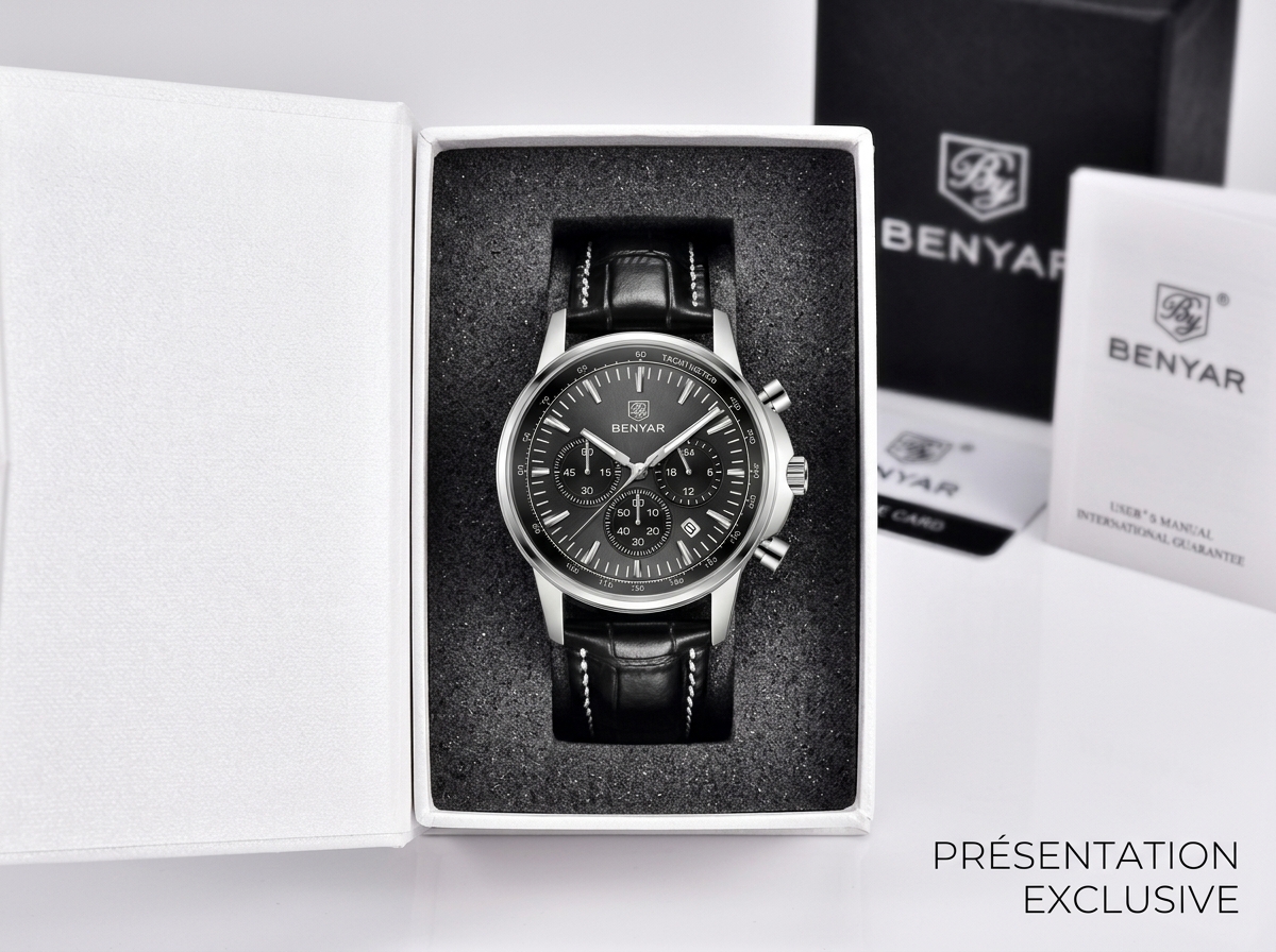 Découvrez l’élégance sportive avec cette montre chronographe BENYAR, un accessoire intemporel qui allie fonctionnalité et style raffiné. Son cadran sophistiqué et son bracelet en cuir noir en font le compagnon idéal pour chaque occasion, du bureau aux sorties décontractées.