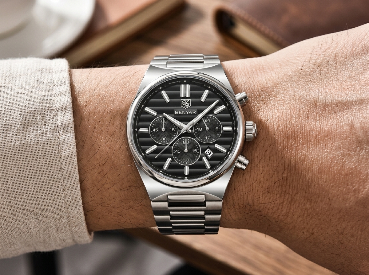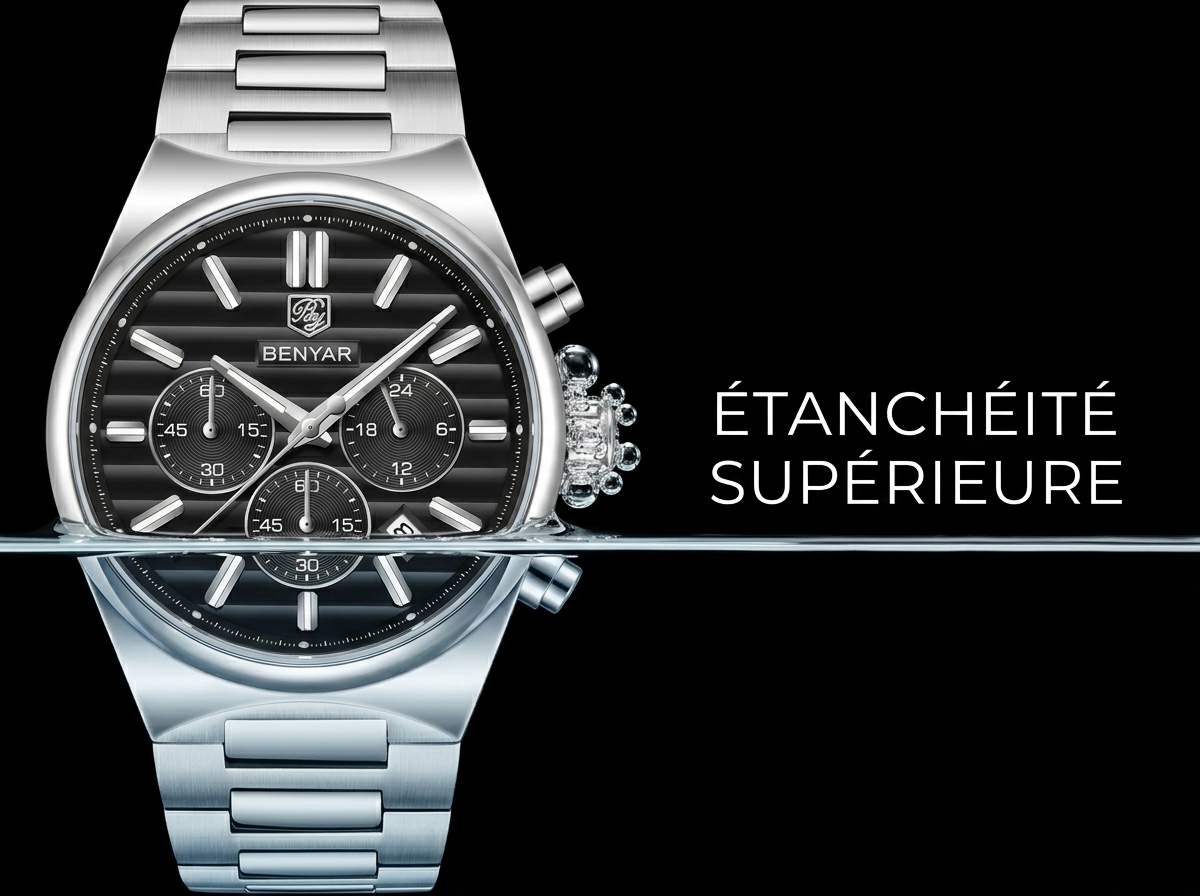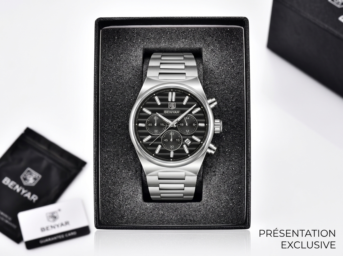 Ce chronographe BENYAR allie une élégance intemporelle à une fonctionnalité robuste, parfait pour chaque instant de votre vie. Son design sophistiqué et ses finitions soignées en font un accessoire indispensable pour l’homme moderne.