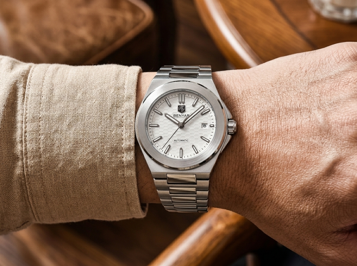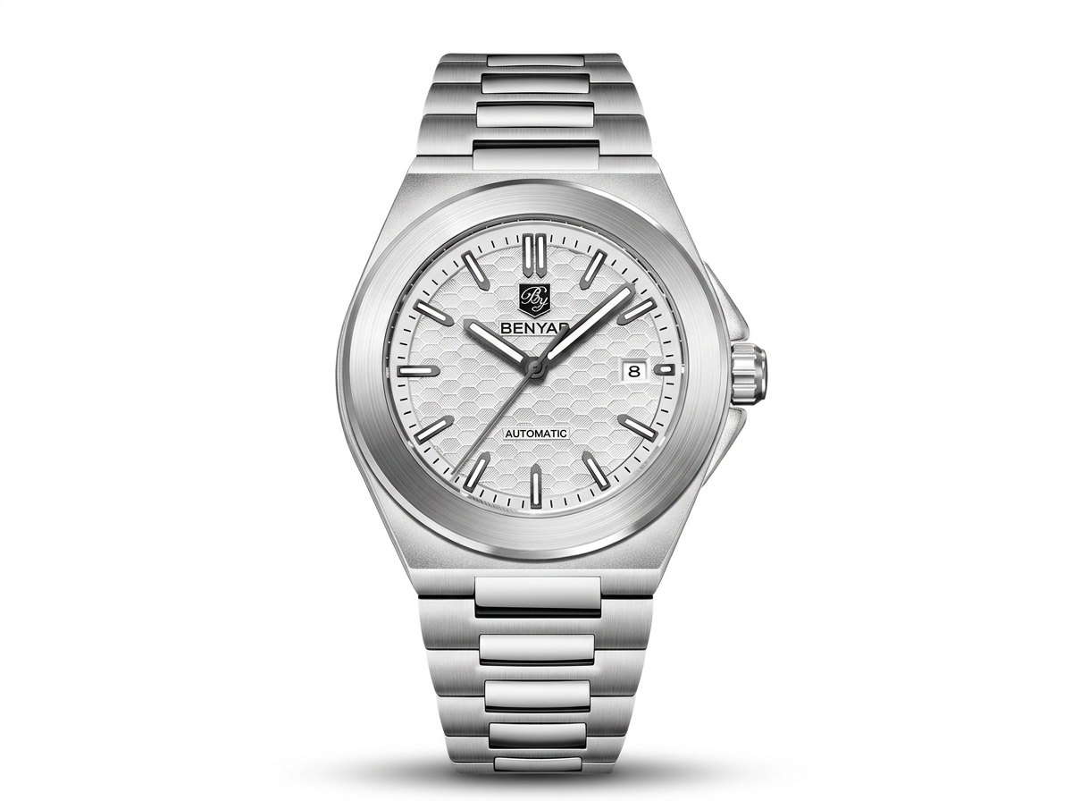 Découvrez la montre automatique Benyar, une fusion parfaite d’élégance moderne et de robustesse sportive. Son cadran texturé nid d’abeille et son boîtier octogonal en acier inoxydable en font un accessoire incontournable pour un style affirmé.