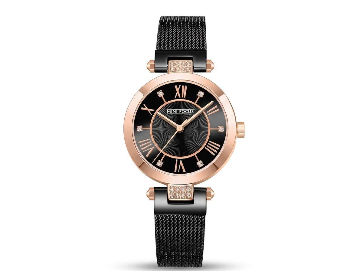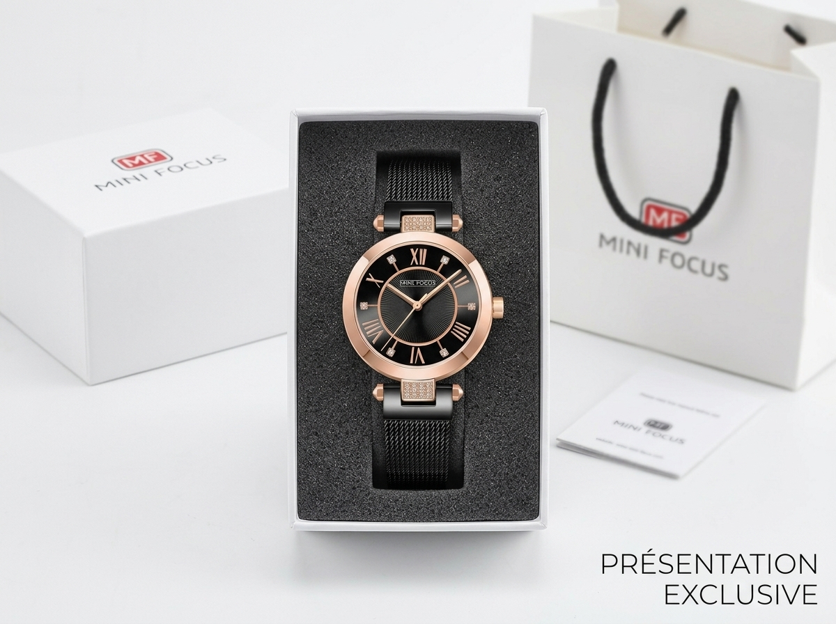 Découvrez l’élégance intemporelle de la montre MINI FOCUS, sublimée par son boîtier rose doré et son cadran noir profond. Ornée de délicats accents de strass sur le cadran et les attaches, elle ajoutera une touche de sophistication discrète à toutes vos tenues.
