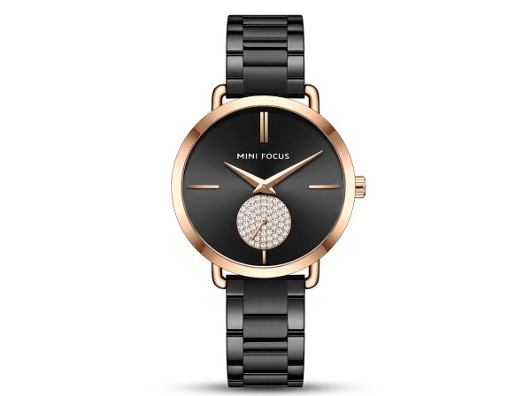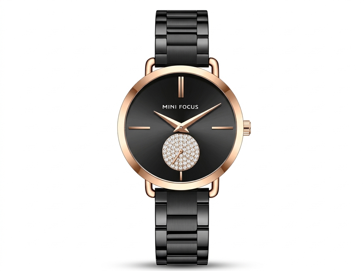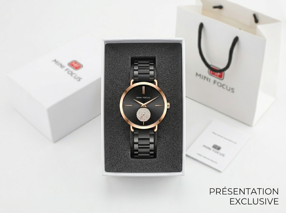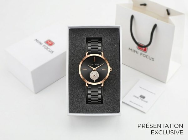 Découvrez l’élégance audacieuse de cette montre MINI FOCUS, un mariage parfait entre le noir intemporel et la chaleur de l’or rose. Son cadran orné de strass capte la lumière, ajoutant une touche de sophistication scintillante à votre poignet.
