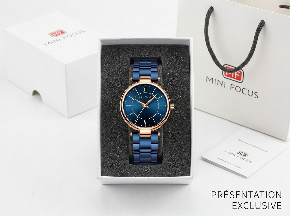 Découvrez l’élégance intemporelle avec cette montre Mini Focus, une fusion parfaite de modernité et de raffinement. Son cadran bleu profond et son bracelet assorti subliment l’éclat de son boîtier doré rose.