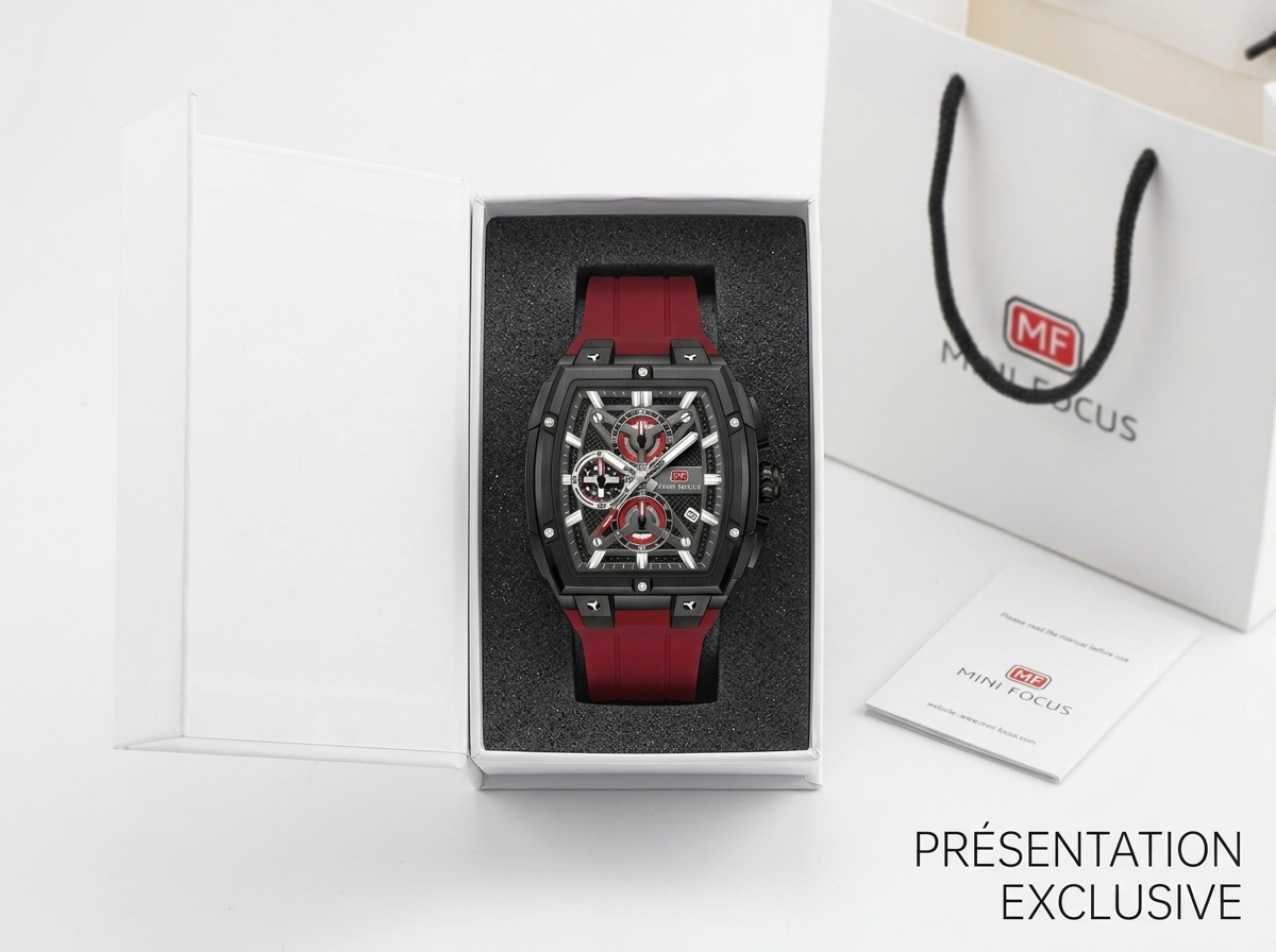 Découvrez la montre MINI FOCUS, une prouesse de design sportif et d’ingénierie moderne. Son cadran multifonctionnel et son bracelet rouge vif en font l’accessoire parfait pour l’homme audacieux et stylé.