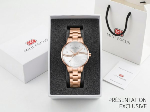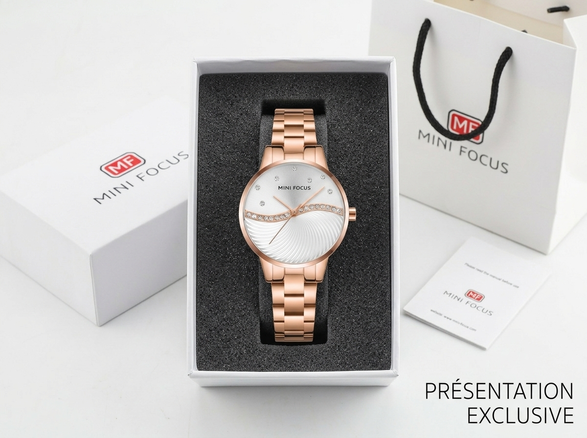 Élégante et raffinée, cette montre Mini Focus pour femme allie la brillance de l’or rose à un cadran délicatement orné de cristaux étincelants. Son design sophistiqué en fait l’accessoire parfait pour sublimer chaque tenue, du quotidien aux occasions spéciales.