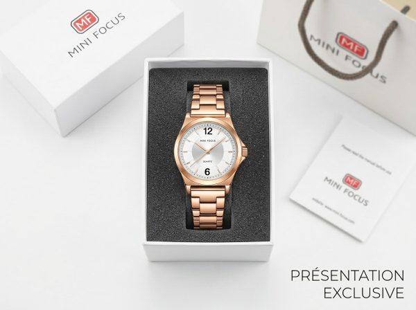 Cette montre Mini Focus en acier inoxydable rose doré incarne l’élégance moderne et la fiabilité. Son design épuré en fait l’accessoire parfait pour sublimer n’importe quelle tenue, du quotidien aux occasions spéciales.