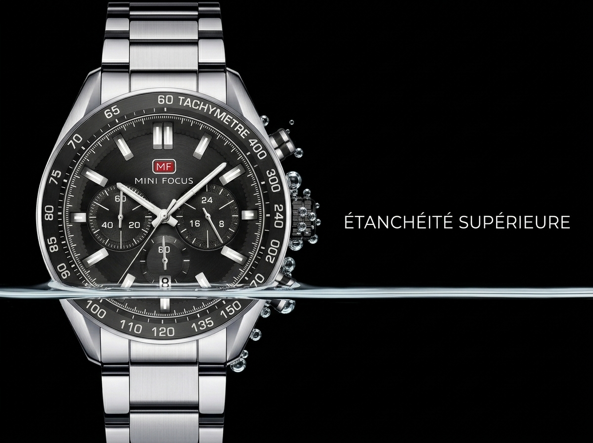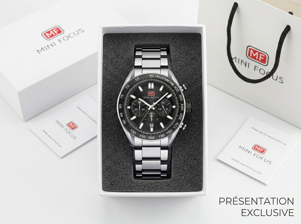 Découvrez l’élégance sportive du chronographe MINI FOCUS, alliant un design raffiné à une fonctionnalité robuste. Son cadran noir sophistiqué et son bracelet en acier inoxydable en font le compagnon idéal pour chaque occasion.