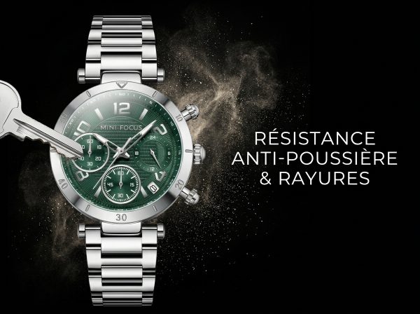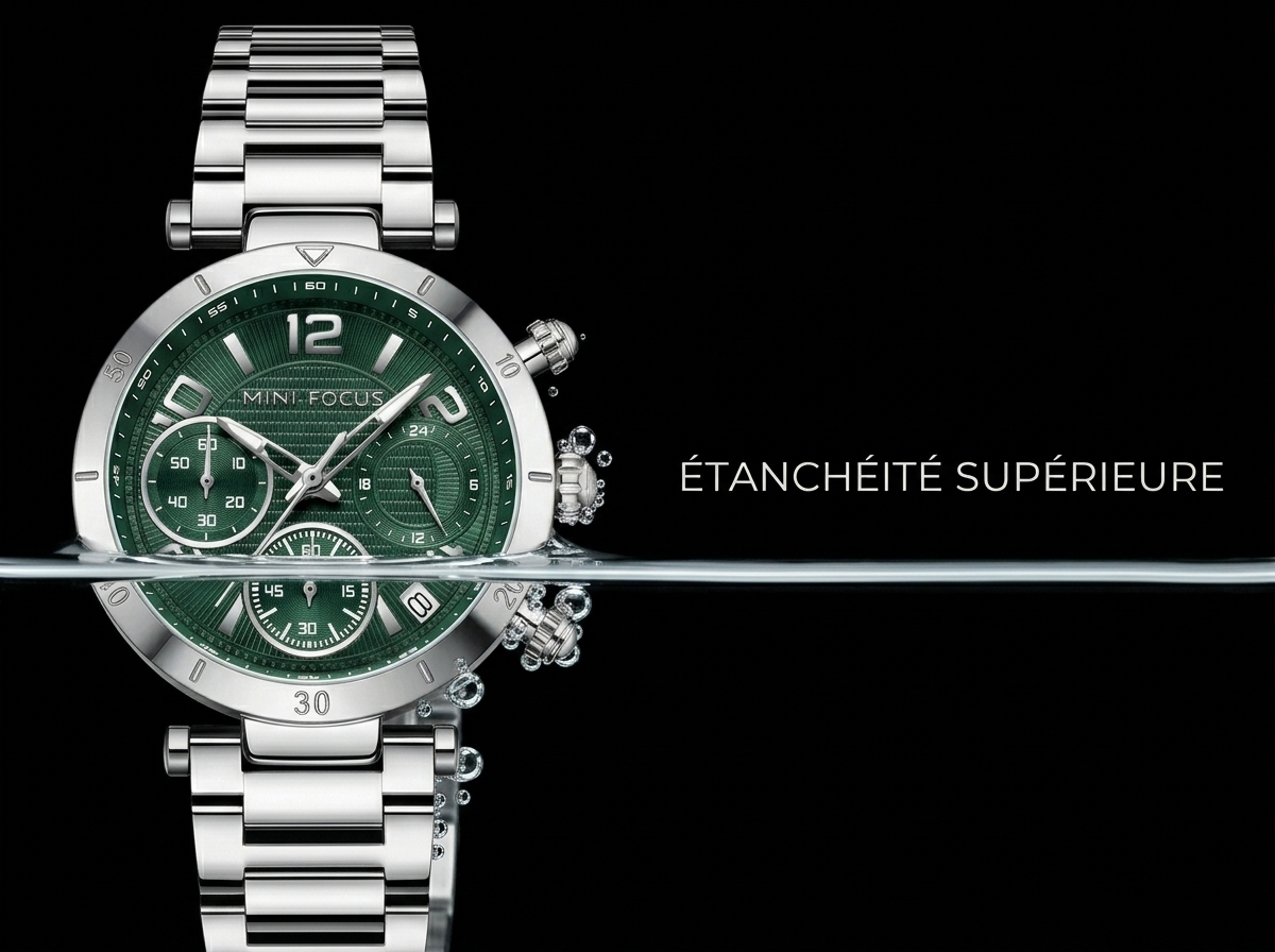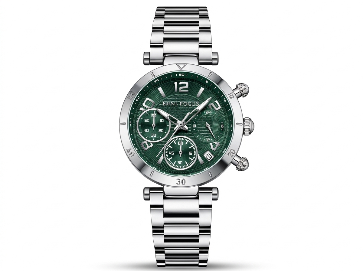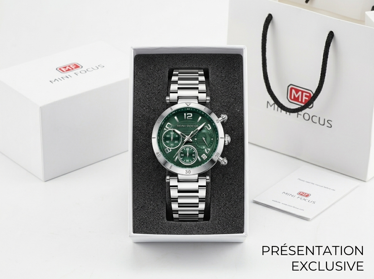 Découvrez la montre chronographe Mini Focus, alliant un cadran vert éclatant à un boîtier et bracelet en acier inoxydable robuste. Un accessoire indispensable pour l’homme moderne en quête de précision et d’une touche de couleur distinctive.