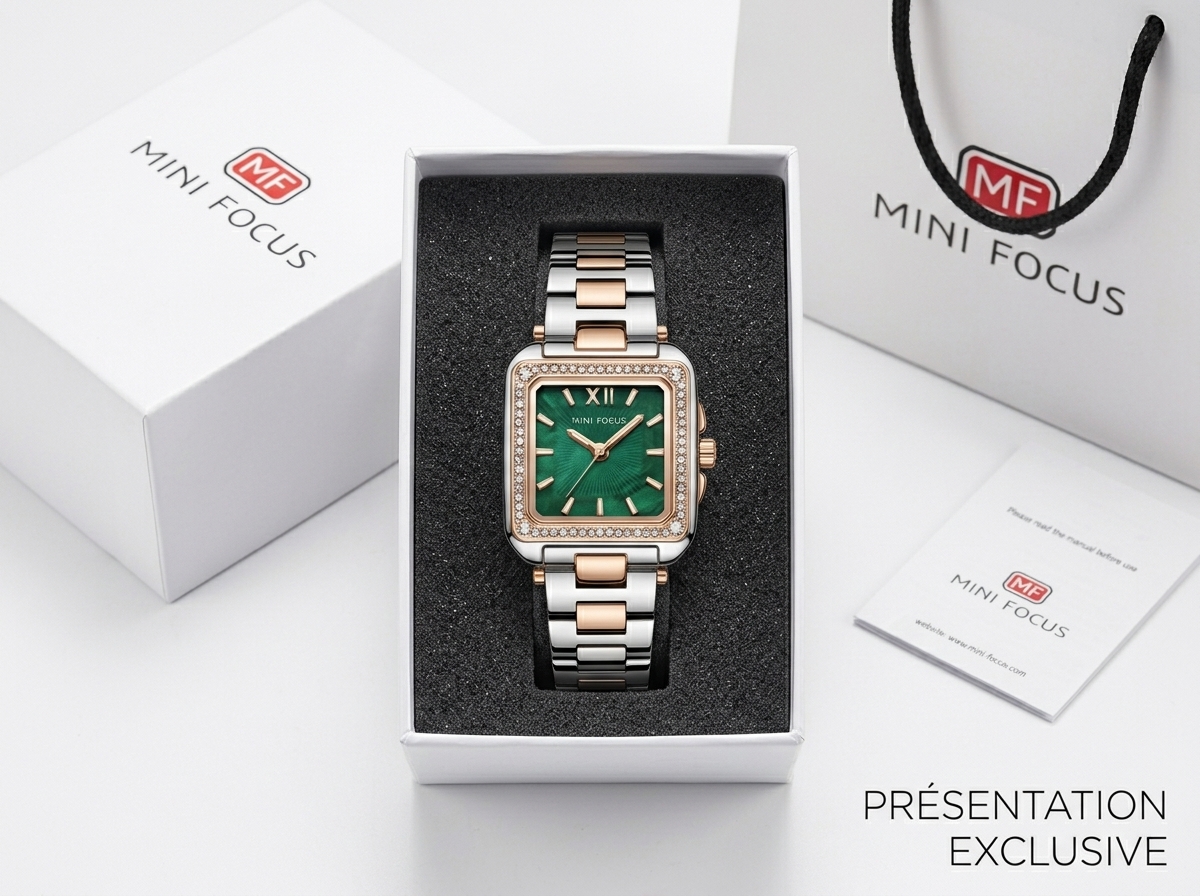 Découvrez l’élégance audacieuse de cette montre MINI FOCUS, avec son cadran vert émeraude éclatant et son boîtier orné de cristaux étincelants. Un accessoire raffiné qui sublime chaque poignet, parfait pour ajouter une touche de glamour à votre quotidien ou à vos soirées.